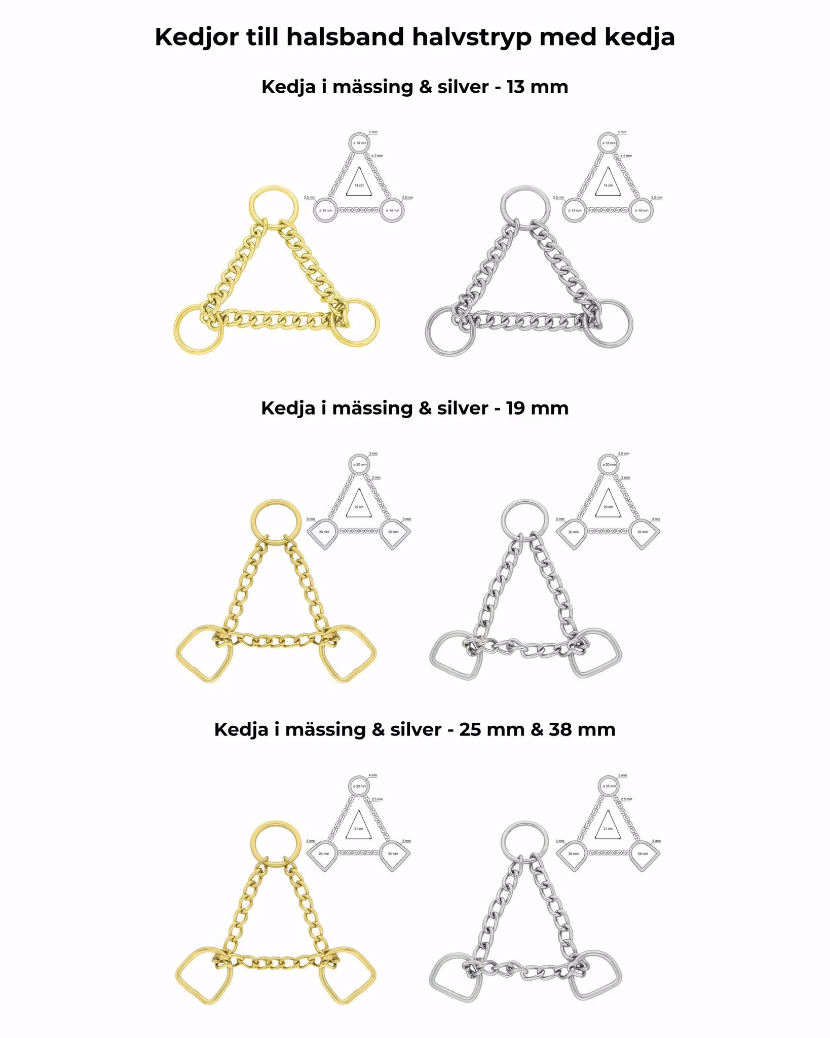 Bredd: Välj mellan 13 mm, 19 mm, 25 mm eller 38 mm (38 mm anpassas till 25mm kedja)